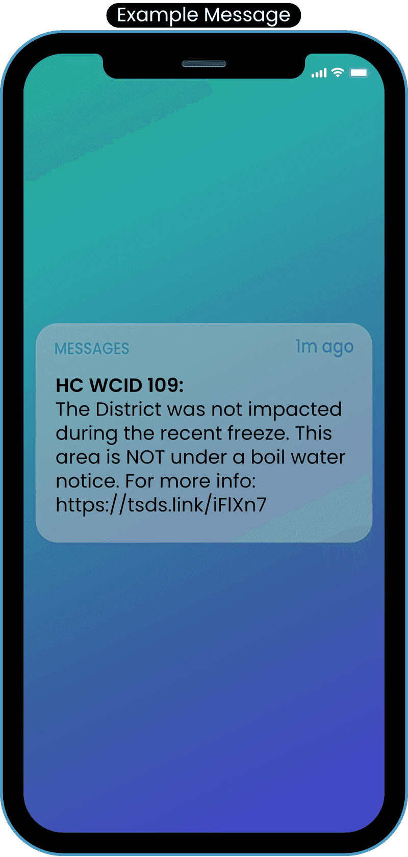 Residents registered for this free service will receive text and/or email notification explaining the basics of the situation with a short link to the news post on the District website with more complete details.